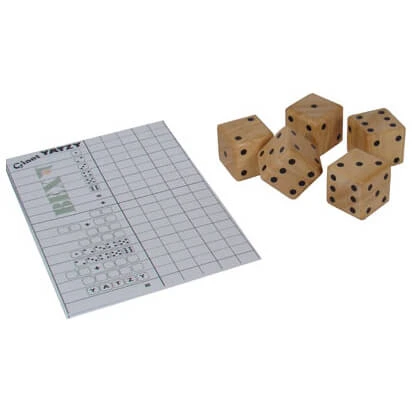 Yatzy ist ein Würfelspiel mit fünf Würfeln und eng mit Kniffel verwandt. Das Giant Yatzy von Bex ist die große Ausführung des beliebten Spiels für Familien, Camper, Kindergeburtstage und Jugendfreizeiten. Die großen Würfel mit einer Kantenlänge von 6 cm sind bestens für die Verwendung im Freien gemacht und bestehen aus widerstandsfähigem Gummibaum-Holz. Der Yatzy Spielblock, in dem die Resultate aufgeschrieben werden, und eine ausführliche Giant Yatzy Spielanleitung sind im Lieferumfang enthalten. Die praktische Transportdose kann gleichzeitig als Würfelbecher verwendet werden.