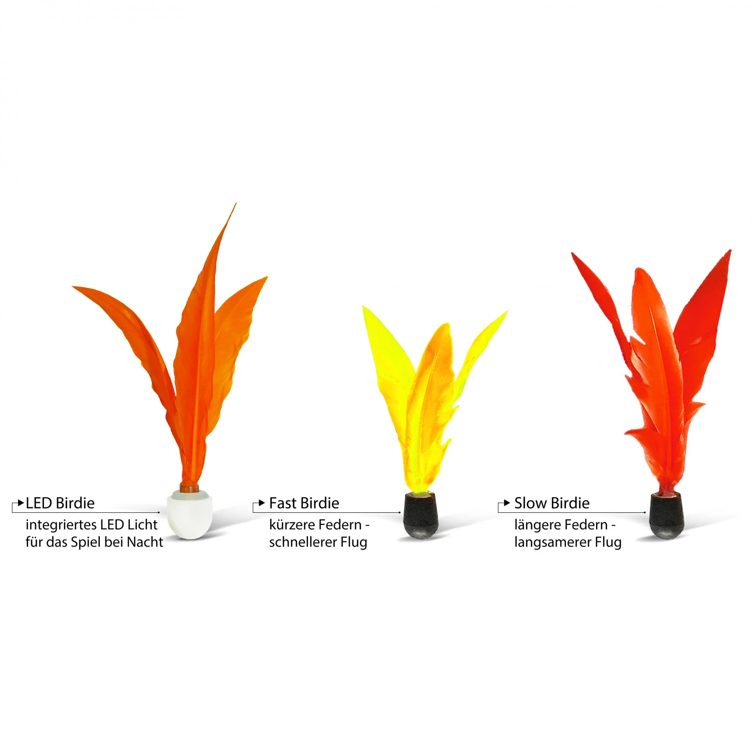 Die Jazzminton Birdies Ersatzfederbälle von Schildkröt kommen im Dreierpack für Einsteiger, geübte Spieler und den LED Ball für das Spiel in der Dunkelheit.