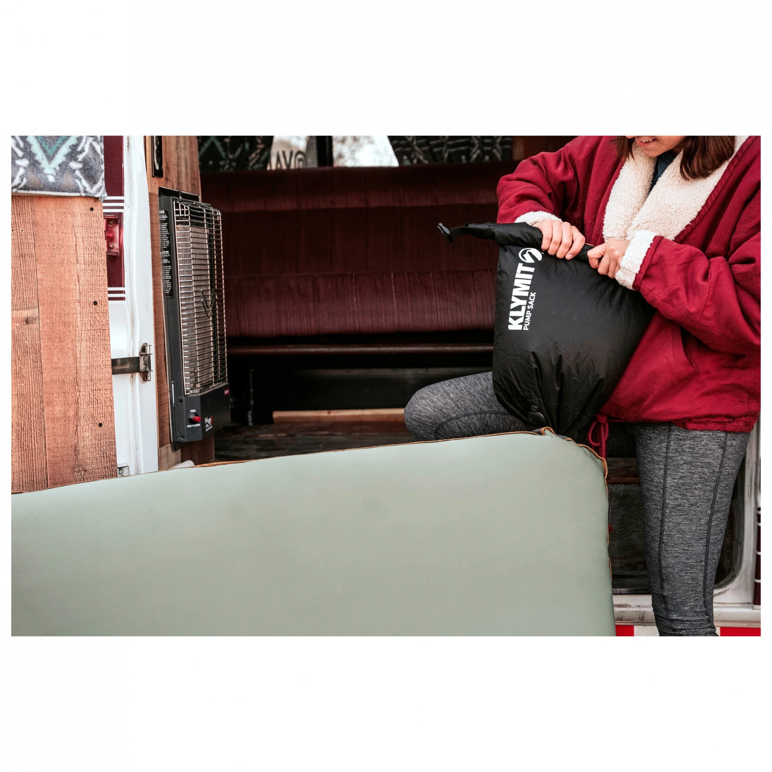 Zum Aufpumpen Deiner Isomatte bietet sich der Large Pump Sack von Klymit an. Der Sack ermöglicht dir ein müheloses Aufpumpen, auf deinen Campingurlauben oder Trekkingtouren mit Zelt.