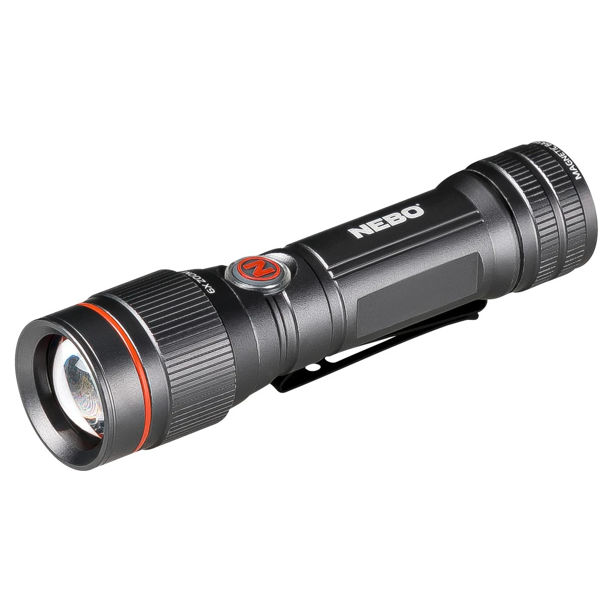 Die kompakte NEBO Taschenlampe 450 Flex zeichnet sich durch ihre robuste Konstruktion und eine maximale Leuchtstärke von 450 Lumen aus! Das ergibt bei dieser Taschenlampe eine maximale Reichweite von 237 Metern. Beim Campen, zu Hause oder bei Outdoor-Unternehmungen eingesetzt, ist sie die richtige Begleitung, um Wege hell auszuleuchten. Außerdem ist sie wiederaufladbar und hat einen sechsfach verstellbaren Zoom. Zudem lässt sich die Taschenlampe mit Akku oder AA-Batterie in Betrieb nehmen. Dreht man den Lampenkopf komplett nach vorne, dann ist der USB-Anschluss zum Aufladen der 14500 Batterie zugänglich.