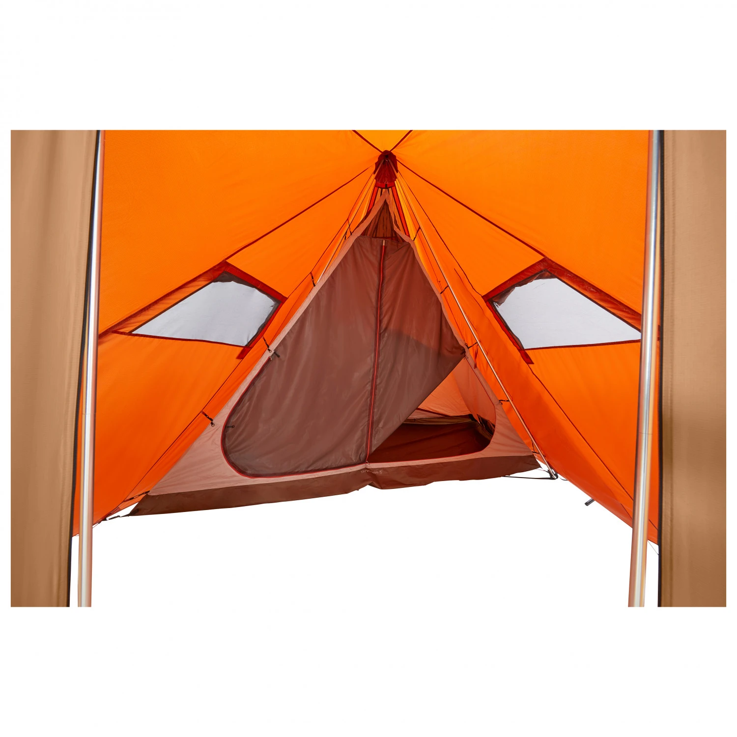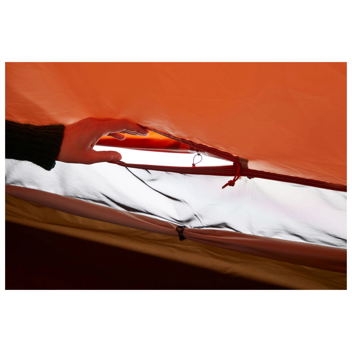 Ruhige und einsame Camping-Ausflüge mit Matratzenlager-Stimmung in der freien Natur. Das Thrymheim 5 PU Gruppenzelt von Nordisk ermöglicht diese unschlagbare Kombination und es kann losgehen auf ein einmaliges Camping-Erlebnis mit vielen Freunden oder der ganzen Familie. Die Innenkabine des Zelts ist mit seinen atmungsaktiven Materialien so beschaffen, dass eine angenehme Atmungsaktivität für einen tollen Luftaustausch sorgt. Das asymmetrische Design des Innenzelts bietet eine Vielzahl an Möglichkeiten und lässt den Innenraum flexibel gestalten. Die Eingangstüre, sowie die Seit-Fenster sind ebenfalls mit einem Mesh-Material ausgestattet. So kann bei Bedarf frische Luft ins Innere des Zelts gelangen und dort für angenehme Bedingungen sorgen.
