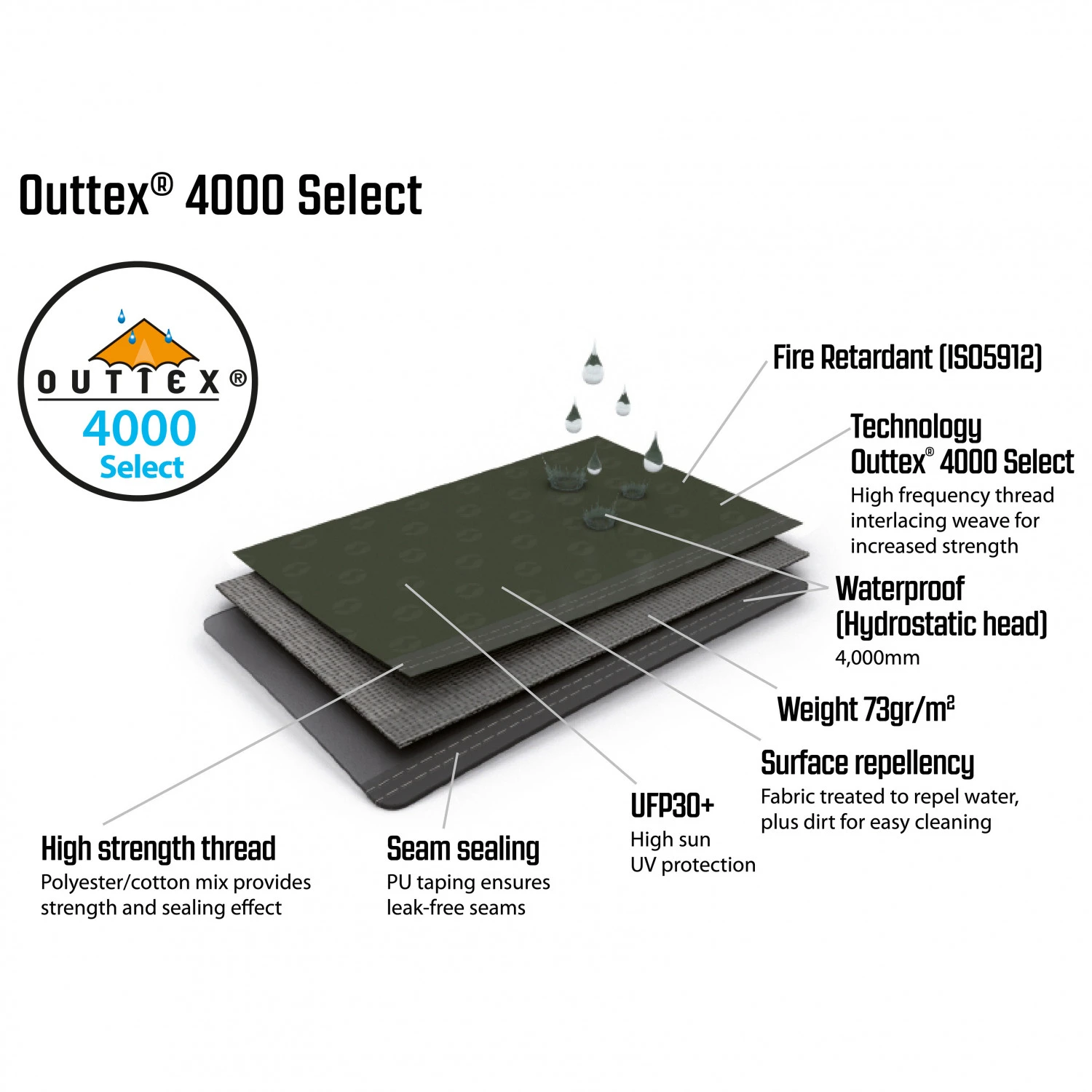 Das Avondale 4PA von Outwell bringt alles mit, was Du für einen stressfreien Campingtrip mit Familie oder Freunden brauchst! Beim Avondale 4PA handelt es sich um ein aufblasbares Dreiraum-Tunnelzelt, das großzügigen Platz für bis zu vier Personen bietet und somit hervorragend für vierköpfige Familien geeignet ist. Das Außenzelt ist aus dem strapazierfähigen Outtex 4000 Select Zeltmaterial von Outwell gefertigt. Das reißfeste Polyestergewebe ist mit getapten Nähten sowie einer wasserabweisenden PU-Beschichtung versehen und sorgt zusammen mit dem eingenähten, wasserdichten Zeltboden für einen optimalen Regenschutz. Das aufblasbare Rigid Air System von Outwell ermöglicht nicht nur ein schnellen und einfachen Aufbau, sondern bietet in Kombination mit dem robusten Stahlgestänge auch ein hohes Maß an Stabilität. An besonders windigen Tagen kann das Zelt zusätzlich mit dem Wind Stabilizer System von Outwell stabilisiert werden.