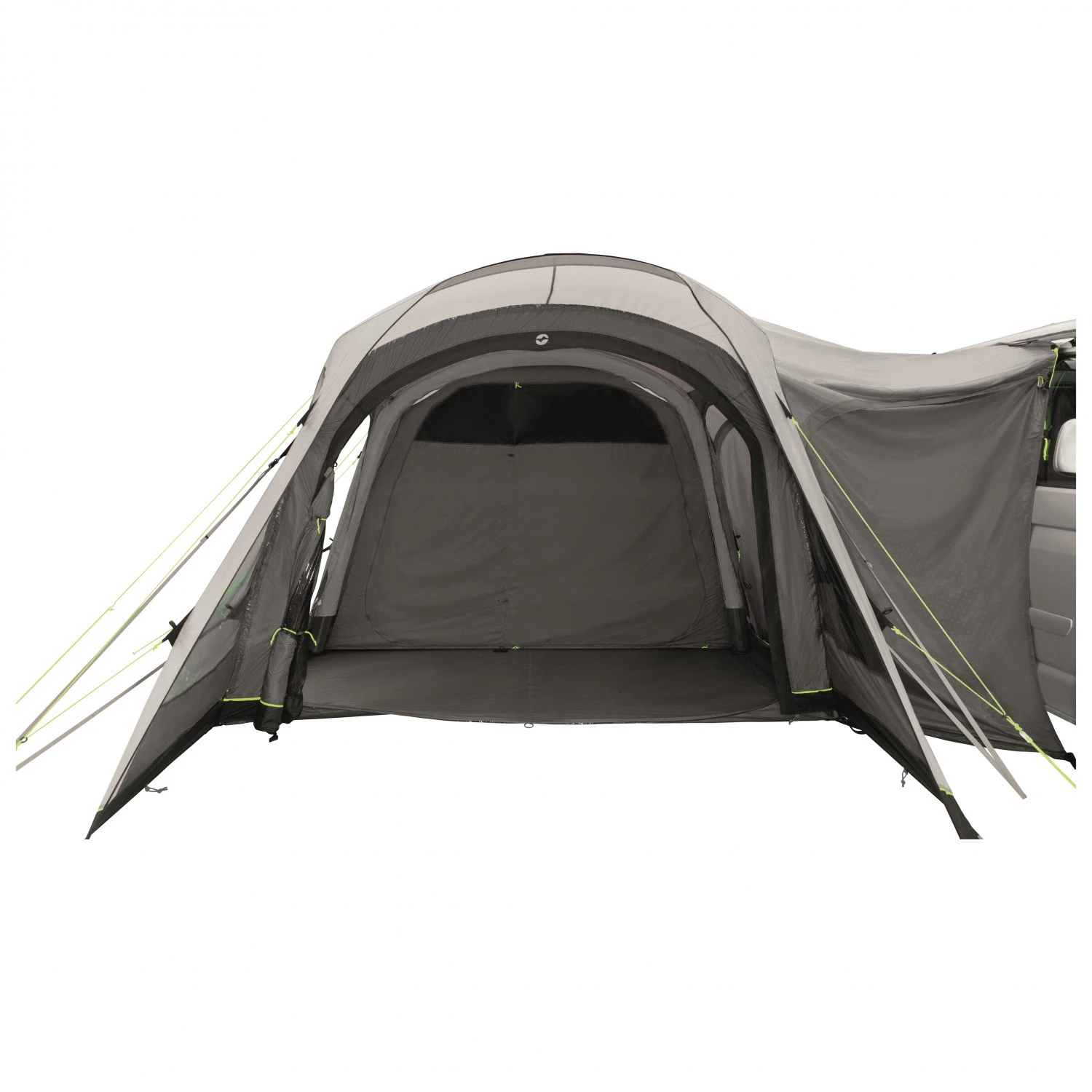 Einen gemütlichen Wohnraum bietet das Bus-Vorzelt Blossburg 380 Air von Outwell! Das wasser- und winddichte Außenzelt sorgt für einen zuverlässigen Wetterschutz. Mesh-Öffnungen liefern eine angenehme Ventilation und verbessern das Klima im Zelt. Alle Fenster sind mit Moskitonetzen versehen, damit Insekten fern bleiben. Du kannst beruhigt lüften und die Aussicht genießen. Drei separate Eingänge bieten einen ungehinderten Zugang zum Zelt und Van. Das praktische Vordach erweitert den Wohnraum praktisch. Details wie Lichtbefestigungsmöglichkeiten und Kabelöffnungen runden das Konzept ab.