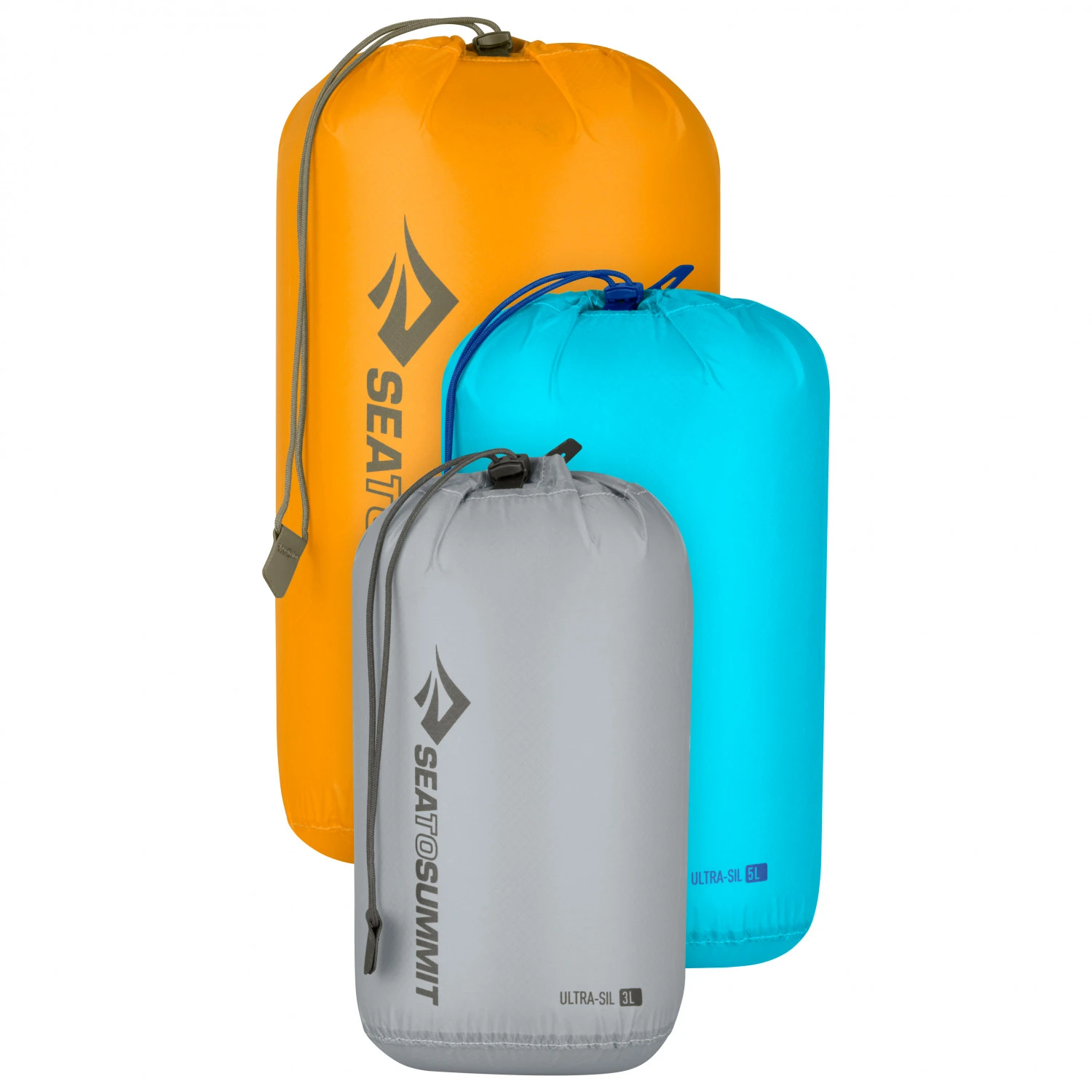 Ultraleichte Ausrüstungs-Aufbewahrung für organisiertes Packen: mit dem Ultra-Sil Stuff Sack Set von Sea to Summit! Das Dreier-Set besteht aus speziellen Beuteln in den Größen 3, 5 und 8 oder 5, 8 und 13 Liter. Es ordnet deine Ausrüstung und packt sie kompakt zusammen – bei minimalem Zusatzgewicht. Möglich macht es das wasserresistente und bluesign-zertifizierte Ultra-Sil 30D-Nylongewebe mit PFC-freier C0-Imprägnierung. Weitere Besonderheiten der Ultra-Sil Stuff Sacks sind die einzigartig reißfesten Kordelzugkanäle mit ihrer Capture Cord Lock Öffnung und die Kombination aus rutschigem Stoff mit sicherem Griff am Boden. Damit sind die Beutel angenehm leicht zu handhaben und gleiten genauso mühelos in jede Rucksackecke hinein wie auch wieder hinaus!