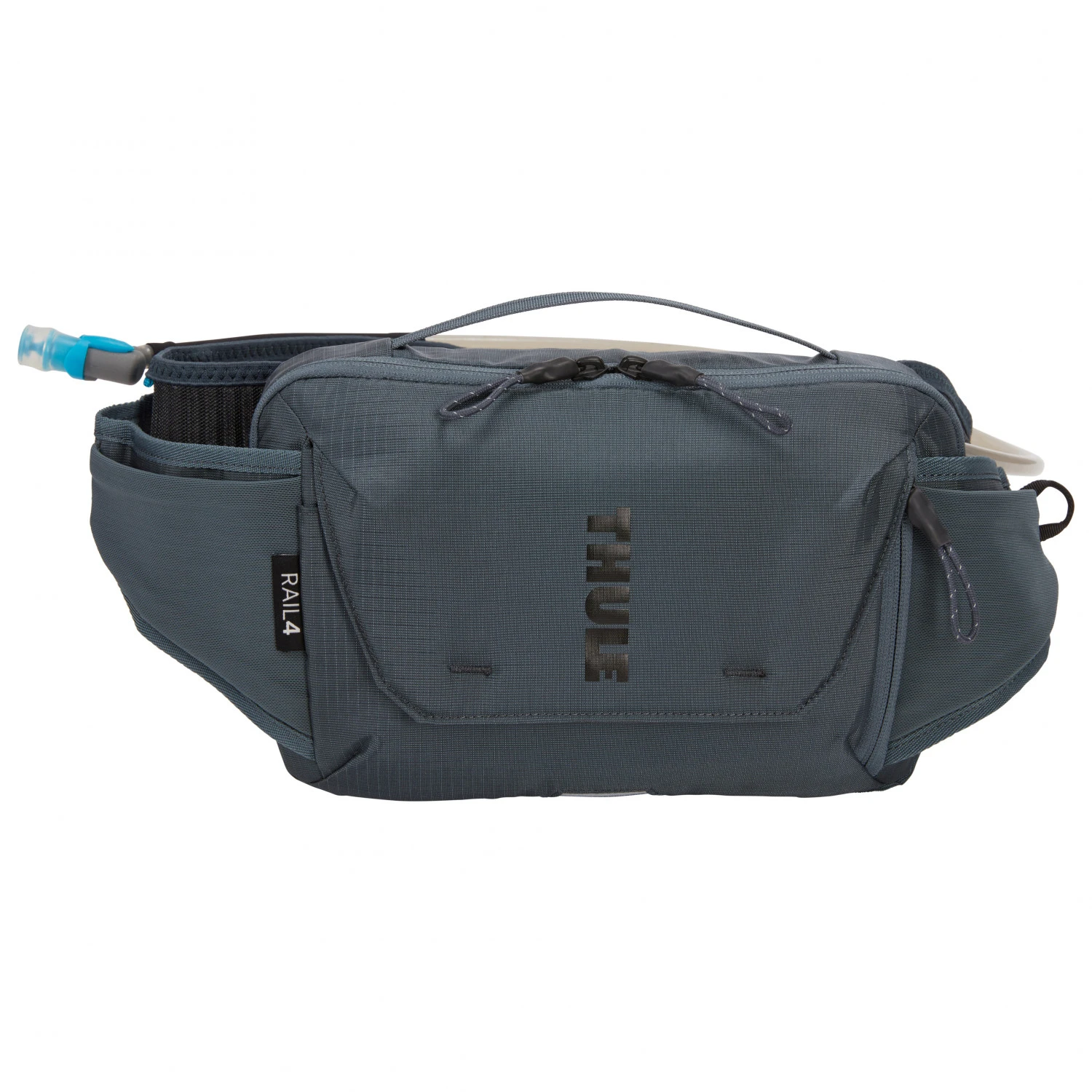 Die Rail Hip Pack 4 ist eine Hüfttasche von Thule, mit der man alles Nötige für die Trails dabei hat. Im Lieferumfang enthalten ist eine 1,5 l Trinkblase, die mit einer magnetischen ReTrakt Schlauchrückführung ausgestattet ist. So findet der Schlauch immer wieder seinen Weg zurück und man kann jederzeit Trinken, ohne Angst davor haben zu müssen, den Schlauch zwischen den Speichen wiederzufinden. Im übrigen Stauraum der Hüfttasche halten Ordnungsfächer Werkzeug und Riegel sicher verstaut und sie sind ebenso schnell zugänglich wie das Telefon, dass in einem dafür vorgesehenen Fach seinen Platz findet.