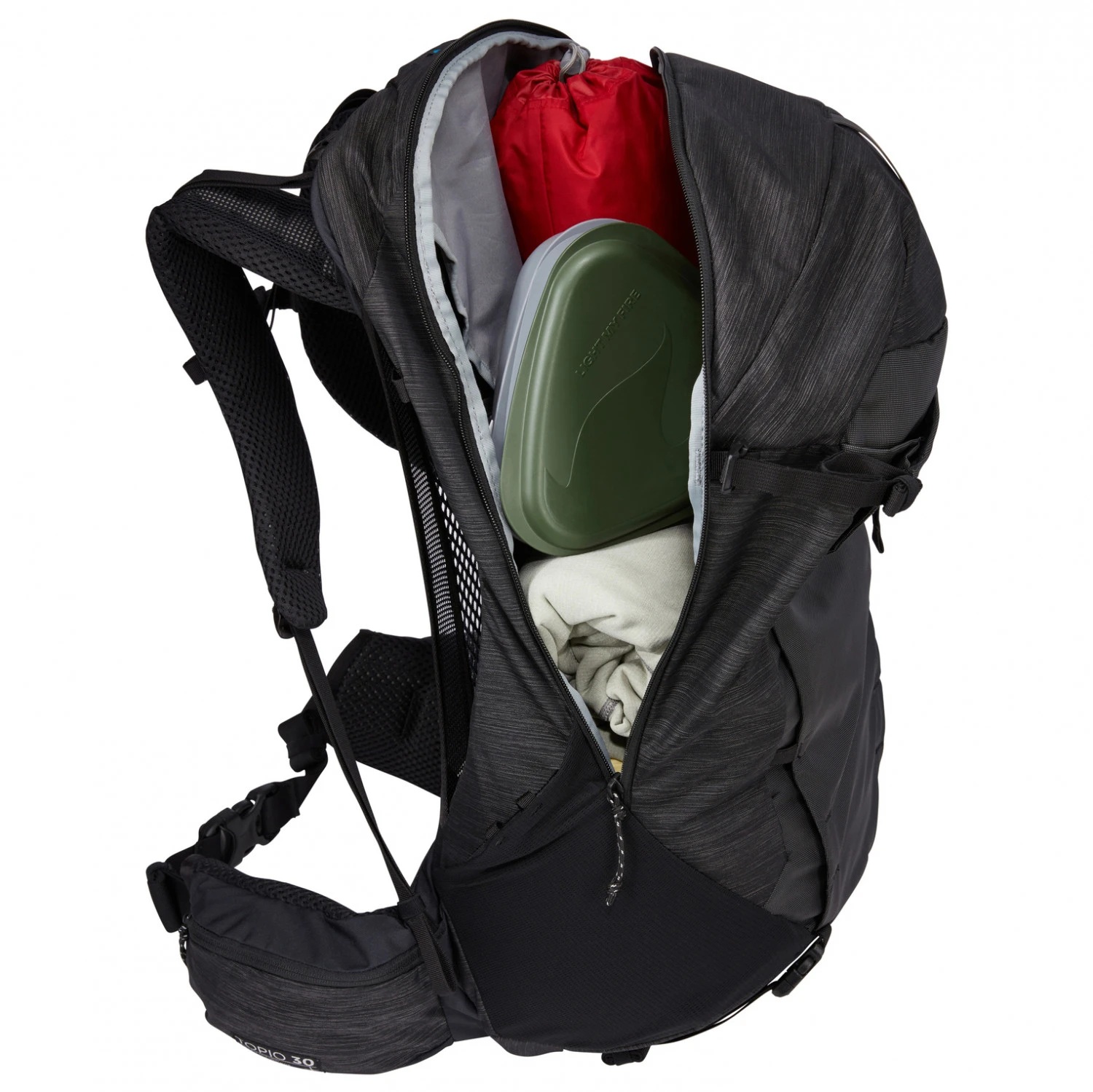 Der Topio 30 von Thule ist der ideale Begleiter für ausgedehnte Wandertouren mit kompakter Ausrüstung! Der Wanderrucksack besitzt ein Volumen von 30 Litern und bietet somit genügend Platz für alle wichtigen Wanderutensilien. Als Material verwendet Thule robustes Oxford-Nylon, das mit einer wasserabweisenden DWR-Imprägnierung versehen ist. Der Rucksack kommt außerdem mit einer abnehmbaren Regenhülle daher, die bei Bedarf für zusätzlichen Wetterschutz sorgt.