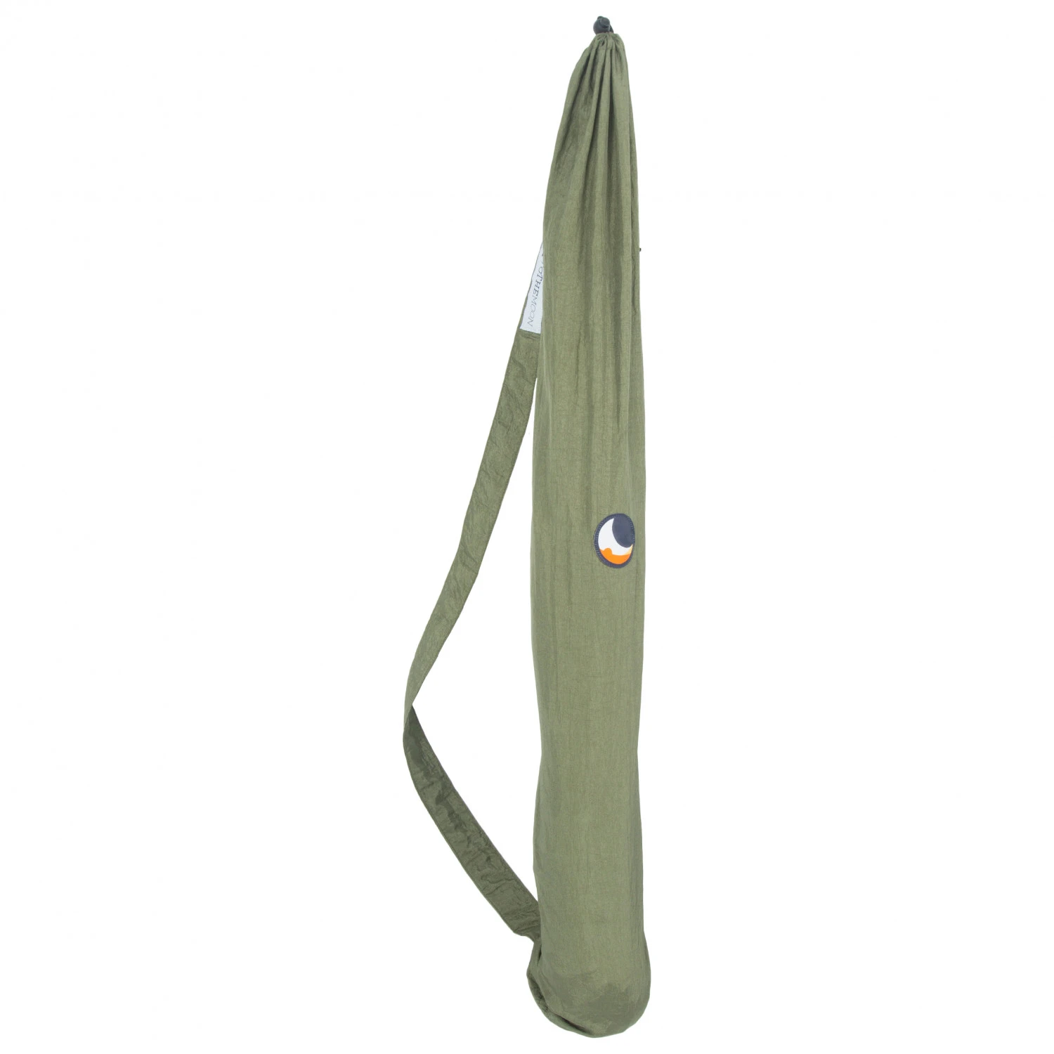 Der Moon Chair Hängestuhl von Ticket to the Moon ist perfekt, um nach einer langen Wanderung ausgiebig zu entspannen. Er ist aus verstärktem Hängemattengewebe gefertigt und wird durch zwei Aluminiumstäbe in optimaler Position gehalten. Zur einfachen Befestigung des Hängestuhls hat Ticket to the Moon ein praktisches Befestigungs-Kit mit Seil und Karabiner beigelegt. Auch ein praktischer Packbeutel für den hängenden Stuhl ist im Lieferumfang mit dabei. Der Moon Chair ist mit maximal 120 kg belastbar und verspricht komfortable Entspannung.