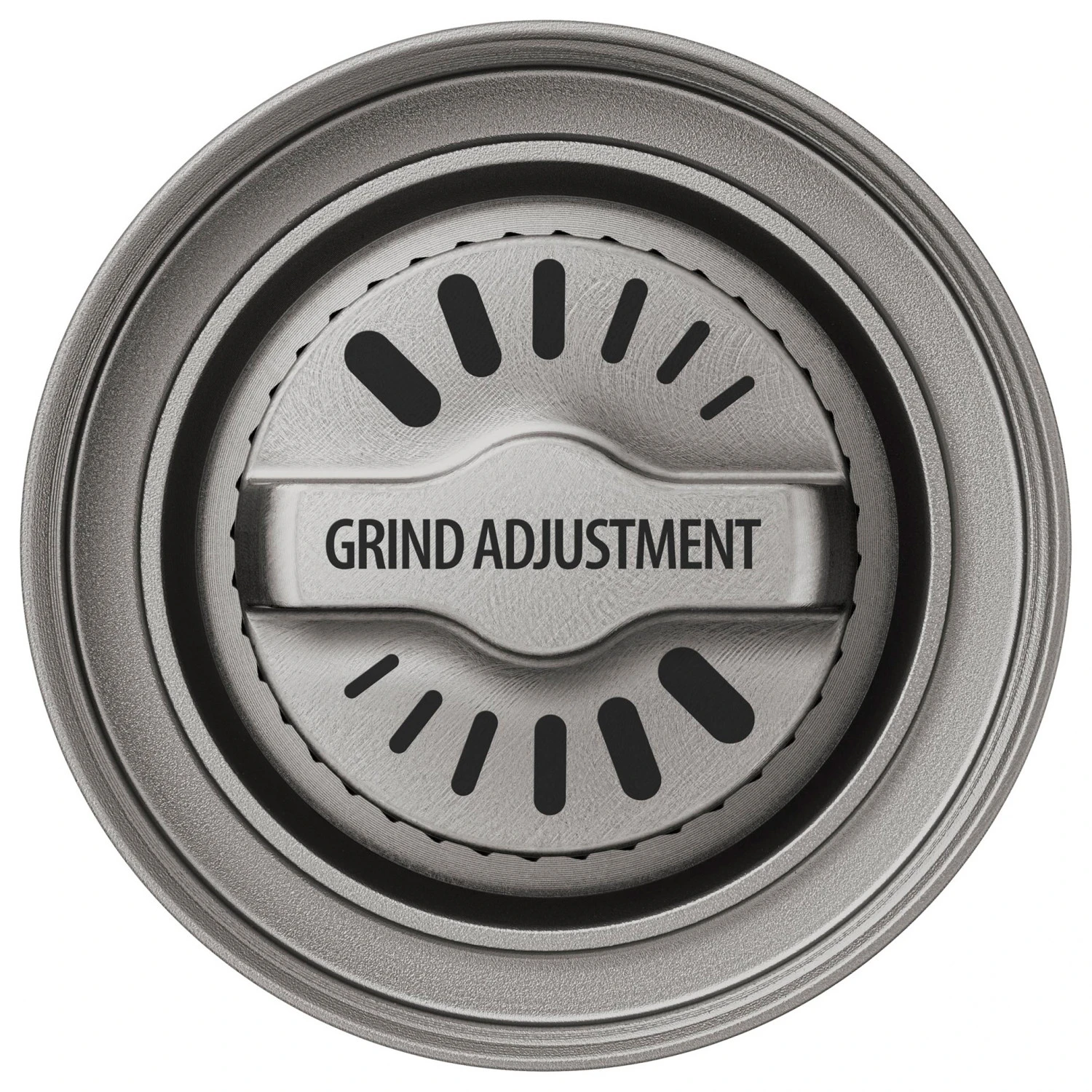 Der Aluminium-Unibody-Rahmen und die interne Struktur sind maschinell gefräst, um eine perfekte Gratausrichtung und minimalen Spielraum zu gewährleisten. Dadurch hat der Mahlgrad eine beeindruckende Gleichmäßigkeit für ein ausgewogenes Kaffeearoma. Montiert auf einer Mittelwelle aus Edelstahl mit Doppellagern, erzeugt die Griffdrehung minimale Reibung für ein glattes und einfaches Mahlerlebnis, selbst bei der feinsten Espresso-Einstellung. Der Grinderkörper ist für einen besseren und bequemeren Halt mit einer Silikonhülle überzogen.